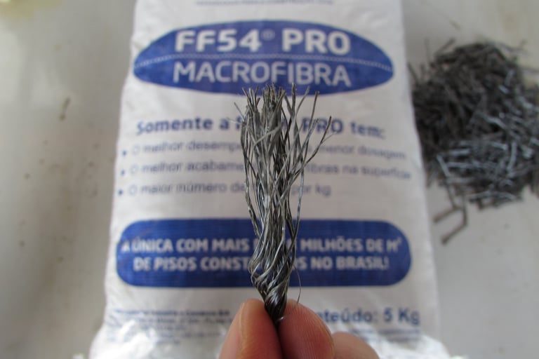 Não trabalhamos com fibras rígidas ou de materiais diferentes do polipropileno, pois essas opções se mostraram inferiores, apresentando menor resistência estrutural e com um acabamento superficial insatisfatório (as fibras afloram, ou seja, aparecem na superfície do concreto, comprometendo a estética e durabilidade da obra).